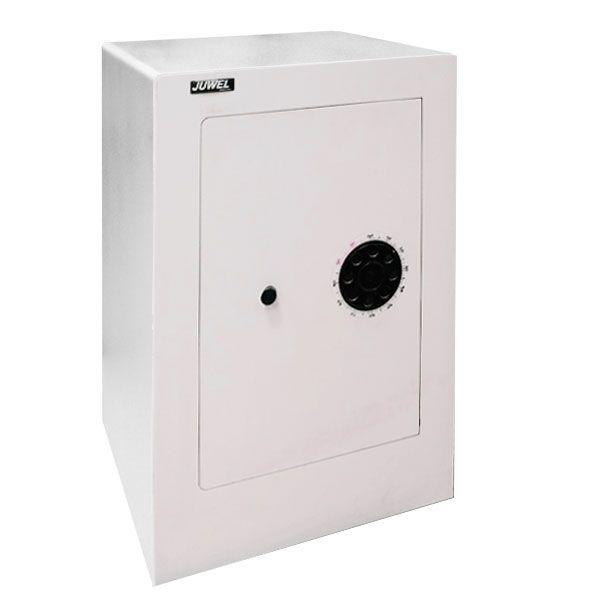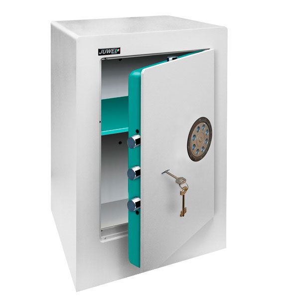 Модель JUWEL 6777 — офисный сейф для надёжного хранения ценных бумаг и вещей. Характеристики защиты соответствуют европейским нормам и подтверждены сертификатом. Стальной корпус имеет толщину в 5 мм, лицевая панель - 8 мм, дверца - 55 мм. Внутри сейфа расположена съемная полка, регулируемая по высоте. Крепление сейфа – к полу или к стене (анкера). Кодовый механический замок данной модели работает с кодом из трех чисел, что дает более миллиона вариантов комбинаций. Сменить код возможно только с помощью специального ключа. Область замка защищена от высверливания пластиной из износостойкой стали. Корпус выполнен в светло-сером цвете (код оттенка RAL 7035).